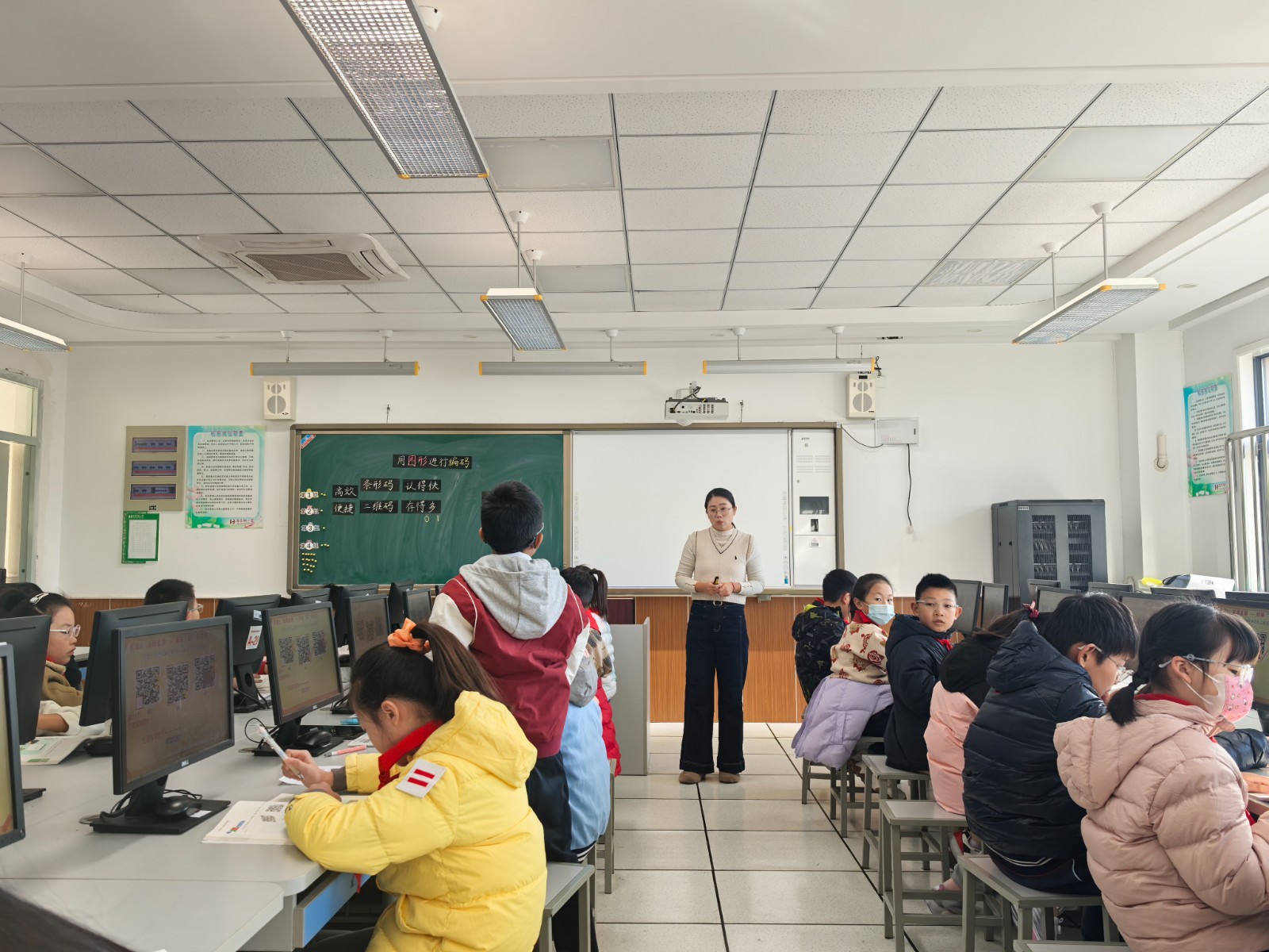 课堂上,郑文文老师通过“对比三十年结账方式”的导入,迅速激发学生对“扫码”现象的好奇。随后,学生通过“寻码启航”“验码金睛”“编码设计”三个递进式活动,亲身体验图形编码的效率与原理。