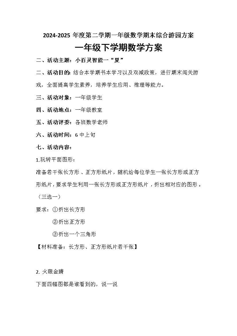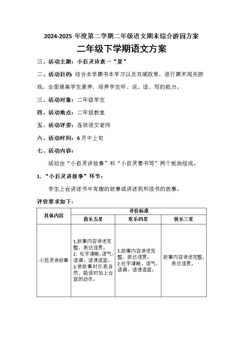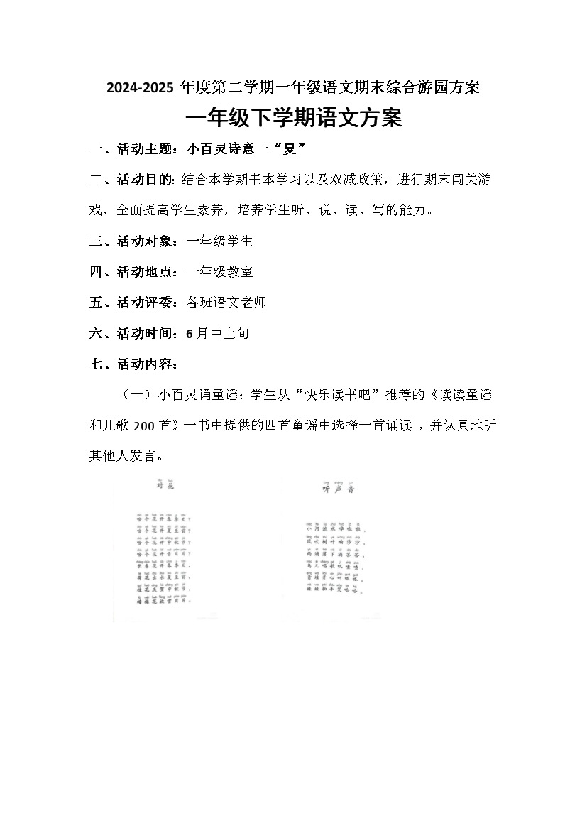 百家湖小学2024~2025学年第二学期一、二年级综合素养展示周活动方案(细则)