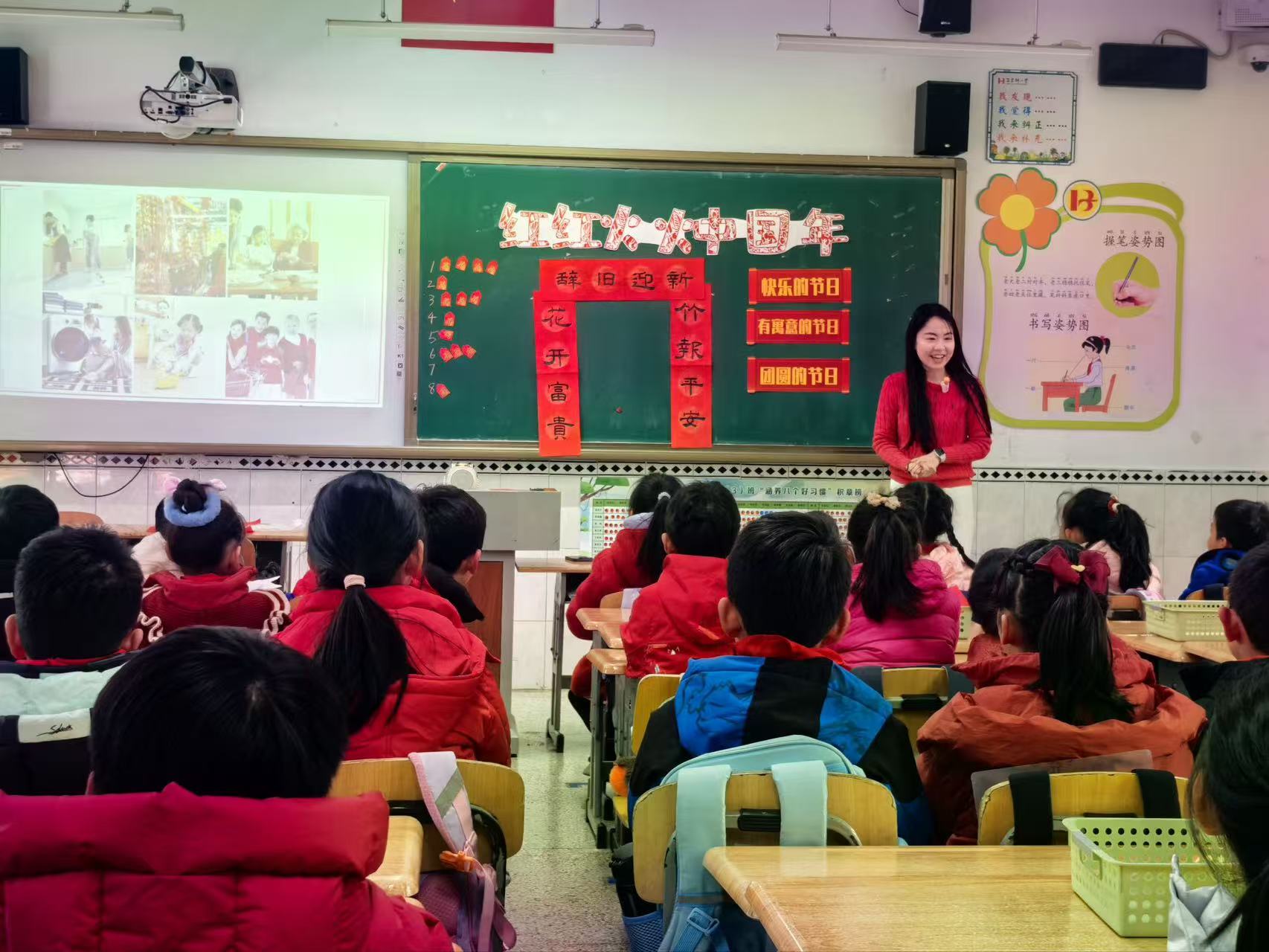 随后,学生通过模拟拜年场景,学习使用祝福语,在情境体验中传递美好情感。课堂注重活动性与感染力,使学生在参与中增强对传统文化的认同,感悟春节作为非物质文化遗产的时代价值。